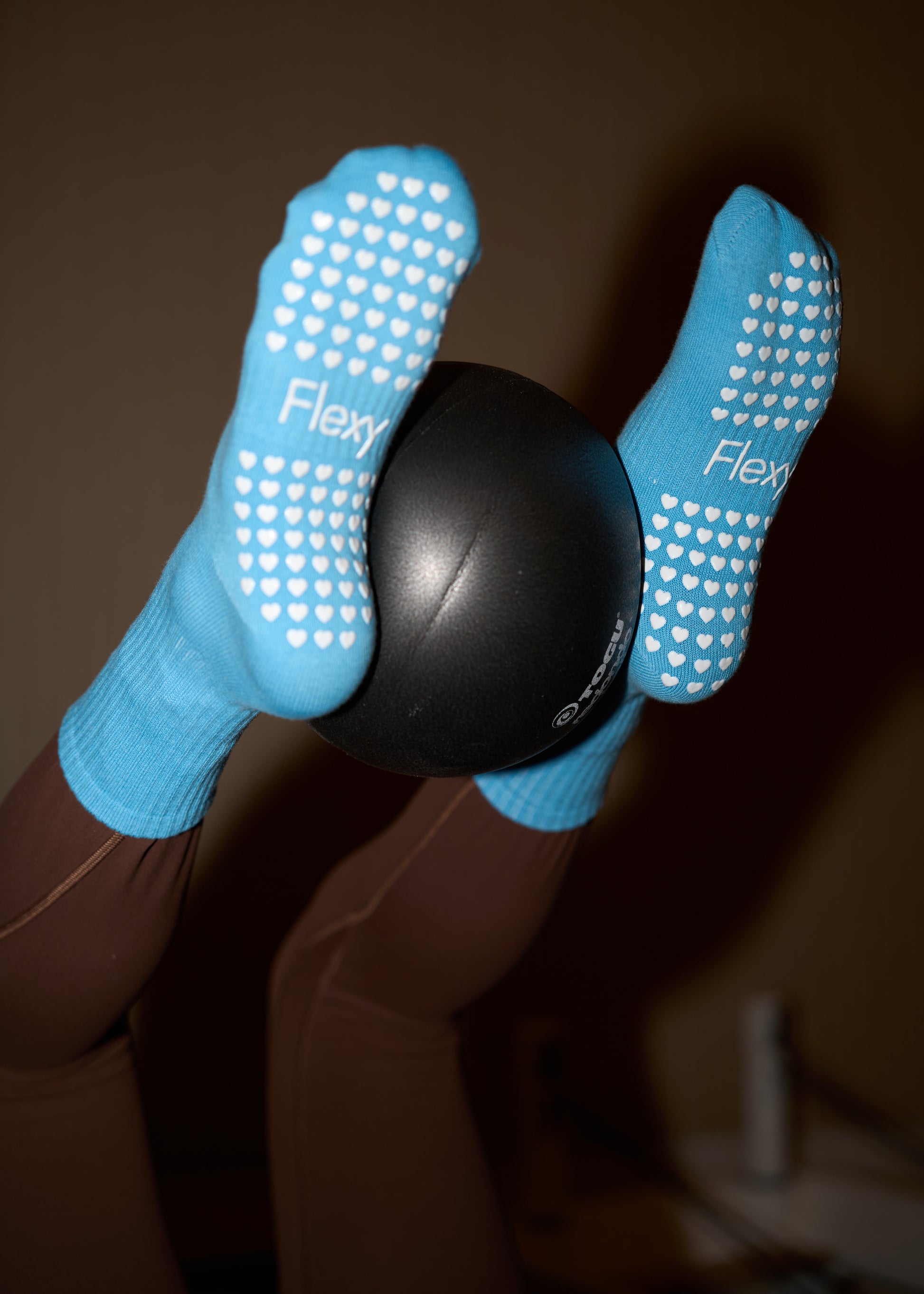 Sky Blue Grip Socks are designed to provide optimal traction and support for Pilates, barre, and Lagree workouts. Their non-slip soles enhance stability, helping you maintain precise movements safely. Crafted for comfort and durability, these socks ensure a secure fit that keeps you grounded throughout your practice. Elevate your routine with reliable grip and supple material that moves with you.